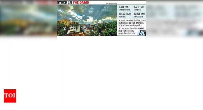 पुणे: थोड्या वेळाने, पावसाळ्यासाठी पिवळ्या रंगाचा इशारा पुणे आणि त्याच्या आसपासच्या भागासाठी बाहेर आला आहे आणि बुधवारी गणेश चतुर्थीच्या आसपास पाऊस पडण्याची शक्यता आहे. या आठवड्याच्या पहिल्या काही दिवसांसाठी कोणताही इशारा देण्यात आला नाही. पुणे सोबतच सातारा, रायगाद, रत्नागिरी आणि कोल्हापूर या घाट विभागासाठी पिवळ्या रंगाचा इशारा देखील आहे.हवामान अधिका said ्यांनी सांगितले की सध्या अनेक यंत्रणा सक्रिय आहेत आणि राज्याच्या वेगवेगळ्या भागात पाऊस पडेल. ईशान्य मध्य प्रदेश आणि त्याच्या अतिपरिचित क्षेत्रावर कमी दाब पडला. वायव्य मध्य प्रदेश आणि त्याच्या अतिपरिचित क्षेत्रामध्ये अप्पर एअर चक्रीवादळ अभिसरण आहे. पंजाब आणि त्याच्या अतिपरिचित क्षेत्रावर वरच्या हवेच्या चक्रीवादळ अभिसरण आहे. पुढील hours 48 तासांत ओडिशा-पश्चिम बंगालच्या किनारपट्टीवर बंगालच्या वायव्य उपसागरात ताजे कमी-दाबाचे क्षेत्र तयार होण्याची शक्यता आहे.“या यंत्रणेच्या प्रभावाखाली, पुढील सात दिवसांत गुजरातवर मुसळधार पाऊस पडण्याची शक्यता आहे. कोकण आणि गोव्यावर २ to ते aug० ऑगस्ट आणि मध्यम महाराष्ट्रात कोकण आणि गोव्यावर जोरदार पाऊस पडण्याची शक्यता आहे. २ Aug ऑगस्ट रोजी कोकण आणि गोवा यांच्यावर जोरदार पाऊस पडला आहे. जोडले.दरम्यान, शनिवारी संध्याकाळी 8.30 दरम्यान आणि रविवारी सकाळी 8.30 दरम्यान घाटांमध्ये विविध ठिकाणी हलके ते मध्यम पाऊस नोंदविला गेला. तमिहिनीला 45 मिमी येथे सर्वाधिक पाऊस पडला, त्यानंतर शिरगाव 35 मिमीसह, भिराने 15 मिमी आणि अंबोनला 30 मिमी नोंदवले. भिवपुरी आणि डावडी यांनाही अनुक्रमे १mm मिमी आणि २m मिमी रेकॉर्डिंगमध्ये हलका पाऊस पडला.लोनावला, ठाकुरवाडी, वाल्वान, वांगाव आणि शिरोटासारख्या इतर भागात 40 मिमी ते 15 मिमी पाऊस पडला. पुणे शहरातील विविध ठिकाणी खराब पर्जन्यवृष्टीची नोंद झाली. त्यापैकी, लवालेचा सर्वाधिक पाऊस 5 मिमीवर होता, त्यानंतर लोहेगॉन 3.5 मिमी होता. शिवाजीनगरला 3 मिमी पाऊस पडला आणि चचवडनेही. पुणेला पाणी देणा d ्या धरणांच्या पाणलोटांना खडकवासला (२ मिमी), टेमगर (१mm मिमी), वरासगाव (२१ मिमी) आणि पॅन्शेट (१mm मिमी) रविवारी पहाटे 8 वाजेपर्यंत पाऊस पडला.आयएमडीच्या दैनंदिन हवामान अहवालात म्हटले आहे की सोमवारचा अंदाज अगदी हलका ते हलका पाऊस असलेला एक सामान्य ढगाळ आकाश आहे.धरणांमध्ये साठाखडकवासला 1.48 टीएमसीटेमगर 3.71 टीएमसी पॅनशेट 10.32 टीएमसी वरासगाव 12.51 टीएमसी सोमवारपर्यंत, चार धरणांमध्ये सुमारे 28 टीएमसी पाणी होते, त्यांच्या एकूण क्षमतेच्या 97%मागील वर्षी, त्यांनी या वर्षाच्या तुलनेत 28.3 टीएमसी साठवले होते