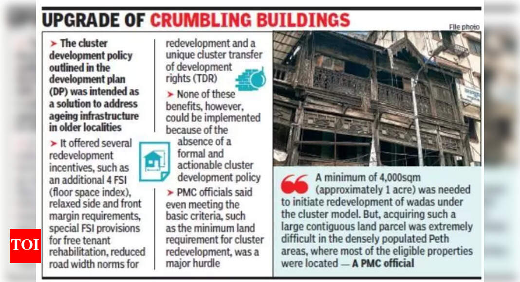 पुणे: सुमारे आठ वर्षांपूर्वी प्रस्तावित, शहरातील जुने वाडे आणि मोडकळीस आलेल्या इमारतींचा पुनर्विकास करण्याच्या उद्देशाने क्लस्टर डेव्हलपमेंट उपक्रमात अत्यल्प प्रगती झाल्याचे पुणे महापालिकेच्या (पीएमसी) आकडेवारीतून समोर आले आहे.52 गृहनिर्माण सोसायट्या आणि 800 हून अधिक सदनिका असलेल्या लोकमान्यनगर येथील रहिवाशांच्या विरोधानंतर हा मुद्दा पुन्हा चर्चेत आला आहे. 1960 च्या दशकात बांधल्या गेलेल्या यापैकी अनेक इमारती आता जुन्या पायाभूत सुविधांशी झुंजत आहेत – भेगा पडलेल्या भिंती, अनियमित पाणीपुरवठा आणि खराब ड्रेनेज सिस्टीम ही सामान्य समस्या आहेत.कसबा पेठचे आमदार हेमंत रासणे म्हणाले, क्लस्टर डेव्हलपमेंटला प्रतिसाद मिळत नसल्याने अनेक मालमत्तांचे नुकसान होत आहे. मालमत्ता लढाईत अडकल्यास किंवा वर्षानुवर्षे दुर्लक्षित राहिल्यास सक्तीच्या अधिग्रहणासारखे पर्याय शोधले पाहिजेत. भूखंड आकाराची किमान आवश्यकता सुमारे 1000sqm असावी.” पेठ परिसरातील रहिवासी अभय जोशी म्हणाले की, मोडकळीस आलेल्या इमारतींमध्ये राहणारे अनेक रहिवासी, विशेषत: भाडेकरू हे आर्थिकदृष्ट्या दुर्बल घटकातील आहेत. “काहींना इतरत्र भाड्याने घरे देणे परवडत नाही. धोरणकर्त्यांनी वृद्धत्वाच्या मालमत्तांच्या पुनर्बांधणीला गती देण्यासाठी सक्रिय पावले उचलली पाहिजेत,” असे ते पुढे म्हणाले.पीएमसीच्या बांधकाम परवानगी विभागाचे वरिष्ठ अधिकारी अमोल बहाडकर म्हणाले की त्यांनी गर्दीच्या ठिकाणांसाठी क्लस्टर डेव्हलपमेंटचे फायदे अधोरेखित करण्यासाठी जनजागृती मोहीम राबवली आहे. “तथापि, अद्यापपर्यंत पीएमसीकडे कोणतेही औपचारिक प्रस्ताव सादर केलेले नाहीत. त्याऐवजी, लहान मालमत्तांचे मालक वैयक्तिक बांधकाम परवानग्या मागत आहेत,” ते पुढे म्हणाले.एकाच पुनर्विकास योजनेंतर्गत अनेक वाड्यांचे एकत्रीकरण करण्यात अडचण येत असल्याचे नागरी अधिकाऱ्यांनी मान्य केले. “सर्व मालक आणि भाडेकरूंकडून संमती मिळवणे आव्हानात्मक आहे आणि अनेक मालमत्ता कायदेशीर वादात अडकल्या आहेत. क्लस्टर डेव्हलपमेंट पॉलिसीच्या मध्यवर्ती असलेल्या एकाच परिसरातील अनेक वाडे पाडून जमीन एकत्र करणे हे एक कठीण काम असल्याचे सिद्ध होत आहे,” असे आणखी एका अधिकाऱ्याने सांगितले.अधिकारी म्हणाले, “पीएमसी युनिफाइड डेव्हलपमेंट कंट्रोल अँड प्रमोशन रेग्युलेशन (यूडीसीपीआर) अंतर्गत क्लस्टर पुनर्विकासाला चालना देत आहे. परंतु भाडेकरू आणि मालक यांच्यातील मतभेद महत्त्वपूर्ण अडथळे निर्माण करत आहेत. आम्ही जागरूकता वाढवण्यासाठी आणि उपक्रमाभोवती एकमत निर्माण करण्यासाठी काम करत आहोत.”मोडकळीस आलेल्या इमारतींचे अपग्रेडेशन विकास आराखड्यात (डीपी) वर्णन केले